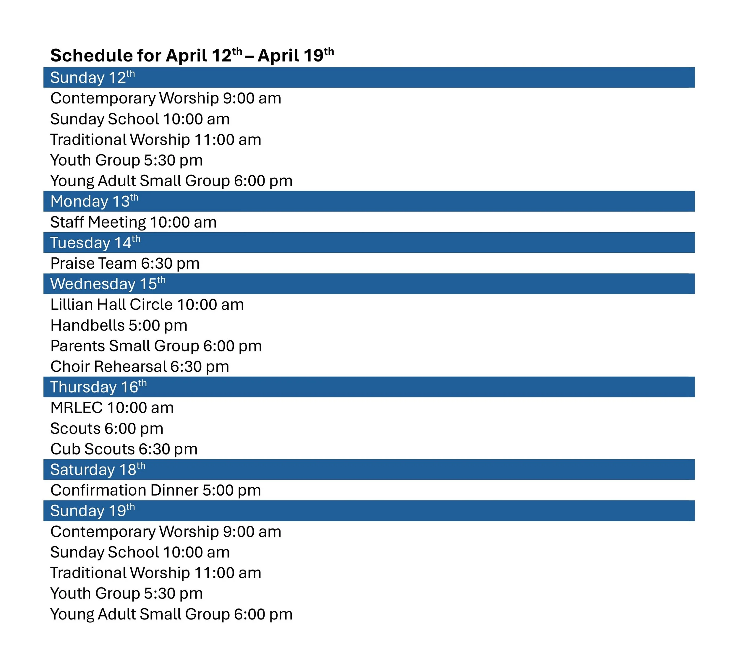 The United Methodist Men and United Women in Faith are pleased to offer camp and college scholarships for active participants of MRUMC programs and activities. Scholarships are available for students planning to attend summer camp and for current high school seniors planning to attend an accredited college, university, or technical school program in Fall 2026. Continuing college students may also be considered depending on available funds. Applications are due by Sunday, May 3. Applications are located in the Narthex. If you have any questions,